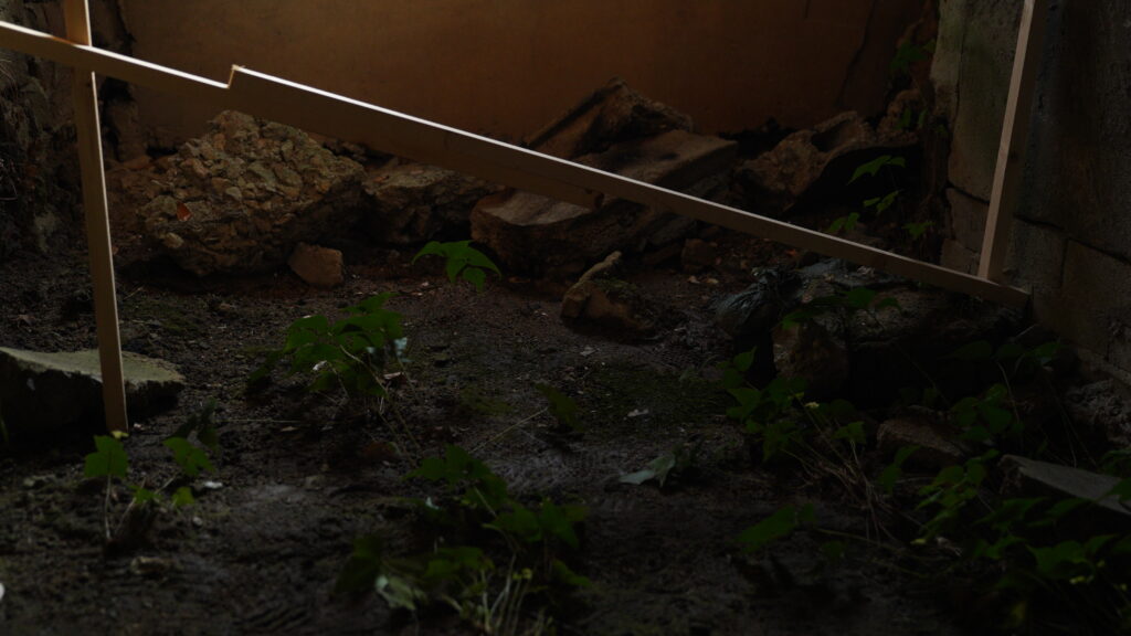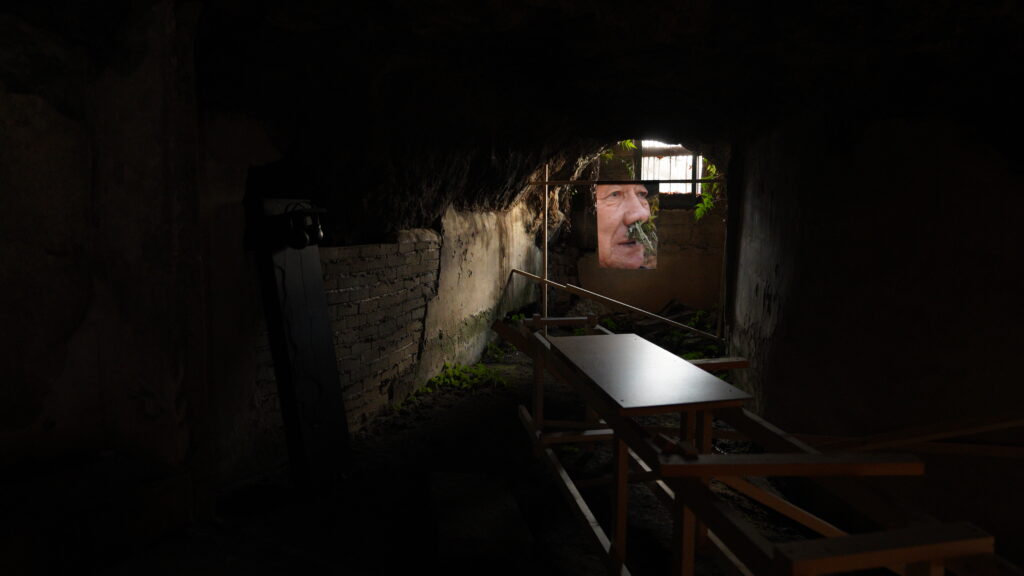 The real life of an elderly man who dreams of unity with nature became an important point of departure for shaping the characters and worldview of the video work Eden at Sea. Driven by the blind belief that mugwort can cure rhinitis, the newly implanted grass in his nostrils mirrors the irony of creating an artificial ecosystem called “Safari,” where a variety of plants and animals are brought together.
