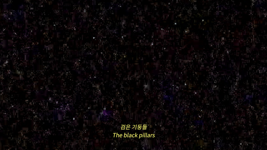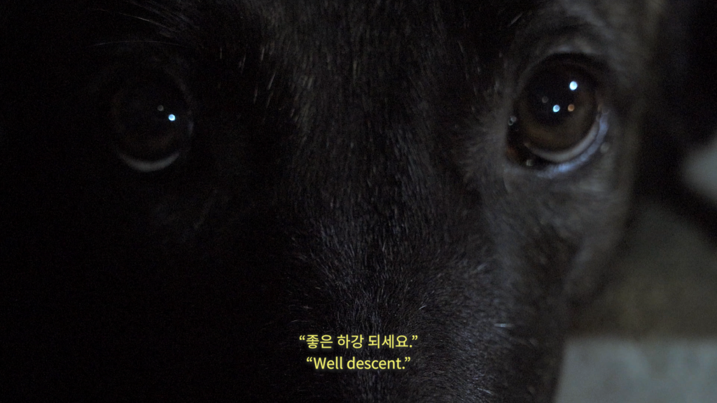 KATA는 ‘아래로부터의 역사(History from below)’라는 작가의 창작 방법론에서 ‘아래’를 계층적 차원의 것이 아니라 지리적 차원의 것으로 오독하면서 지하 세계의 아름다움을 찾아본다. KATA: Bonne descente는 ‘수셰’, ‘코르베’, 그리고 그들의 반려견 ‘베르타’로 이루어진 한 가족의 하강을 쫓아, 카타필(Cataphile) 공동체가 재구축한 비공식 카타콤으로 우리를 인도한다. 동시에 지상의 시스템으로는 이해하거나 감각할 수 없는 순간들을 이야기로 펼쳐 보이며, 이 모든 것이 ‘불법’이라는 경계를 넘어야만 포착된다는 아이러니를 드러낸다.