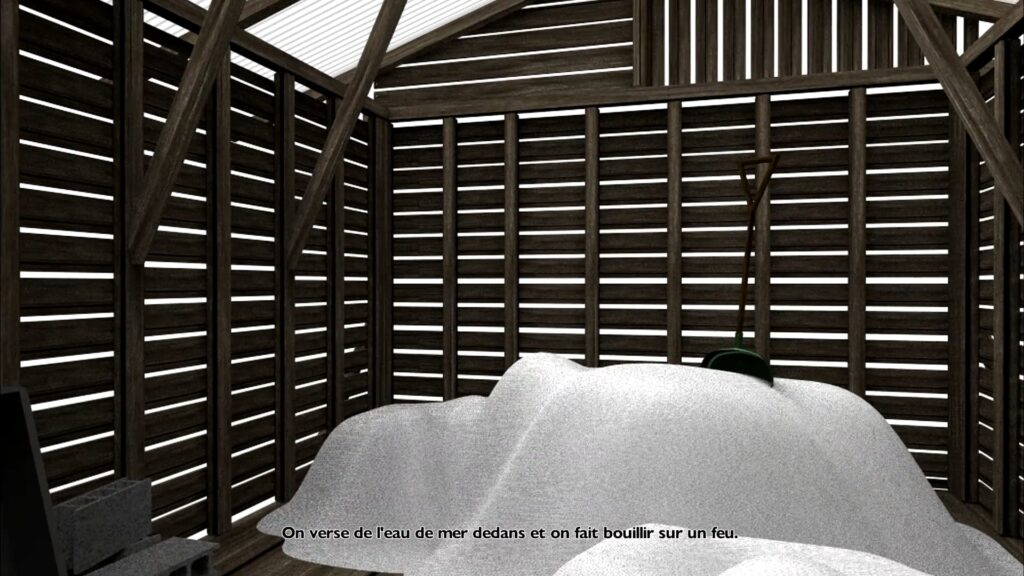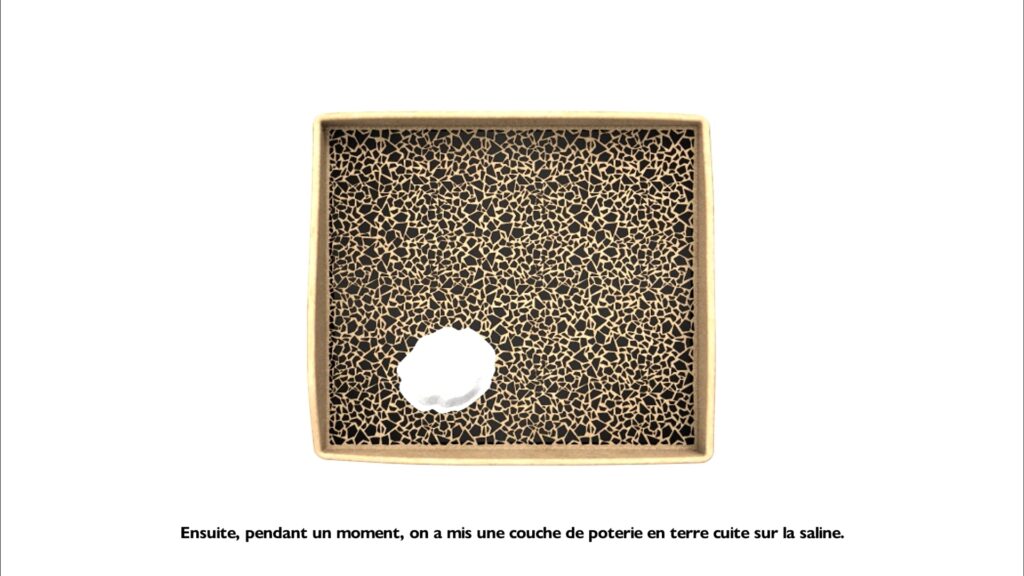 Pixsel is an animated documentary inspired by the artist’s grandfather and father, who both worked in salt fields. It began with a chance experiment—drawing seawater into the studio and attempting to make salt—which led the artist to question the impulse behind “inheriting the family trade” or “imitating one’s father.” Through the voice of the father, the artist explores the reasons why he ended up doing the same work as his own father. The film delves into the history and structure of salt fields, while also portraying the heart and life of a salt worker who shared his days with this place for over 50 years.